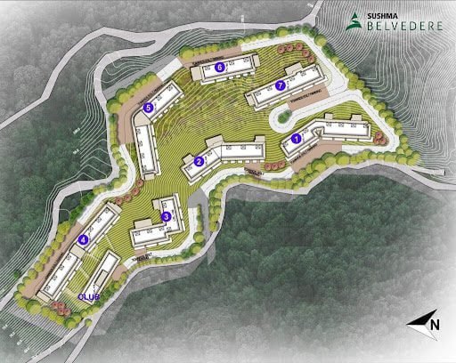 - All apartments at SUSHMA BELVEDERE feature a 6 ft wide sky deck, enhancing the viewing experience.
